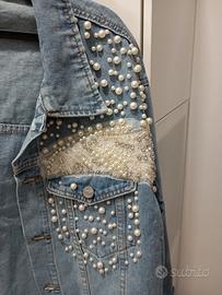 giubbotto in jeans con perline e strass