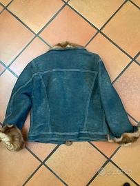 Giubbotto di jeans in stonewash da donna,stile particolare ,mai usato, con inserti: collo, bordi e maniche in pelliccia di visone originale, leggermente foderato e trapuntato