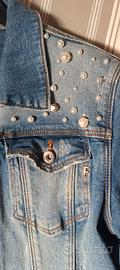 giubbotto in jeans arricchito con perle in cotone elasticizzato taglia M come nuovo