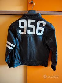 Per ragazzo, taglia 36 (h140), giubboto in pelle nera, stile motociclista