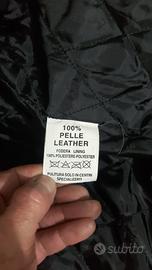 Realizzata in vera pelle scamosciata con una combinazione di colori nero, marrone e crema. Regolabile in vita e sulle maniche, doppie tasche esterne e una interna, colletto alla coreana e chiusura a zip centrale.