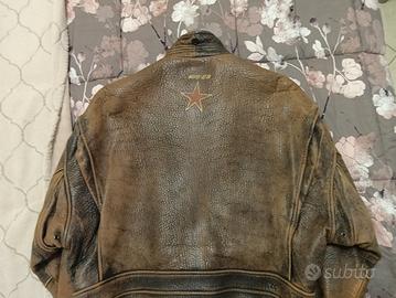 Questo giubbotto in pelle è una giacca da volo vintage di marcaAvirex, spesso associata a stili militari e aeronautici come il modello indossato nel film Top Gun.