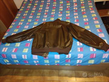 Giubbotto in pelle marrone,stile bomber,fatto completamente da artigiano pellettiero,usato poco,come nuovo, taglia large 50