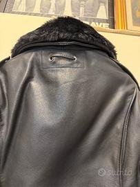 Bellissima giacca da motociclista in vera pelle nuova, mai usata, taglia M con colletto con pellicciotto