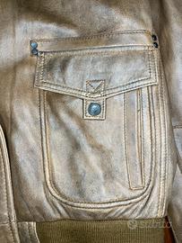 Vendo giubbotto in vera pelle Aeronautica Militare, modello originale distribuito da Cristiano di Thiene, taglia 46. Ispirato allo stile degli aviatori italiani, presenta una finitura vintage con effetto consumato naturale.