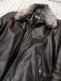 Vendo Giubbotto in pelle colore nero Schott, taglia XL, pelliccia color cenere (particolare con bottoni e removibile), nessun segno di usura (PARI AL NUOVO) indossato una sola volta e conservato con copertura. Corredato di gruccia appendiabiti originale Schott.