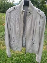 Giubbotto in pelle tipo bomber per la mezza stagione. Foderato. Colore bianco sporco effetto stropicciato. Taglia M. Utilizzato pochissimo.