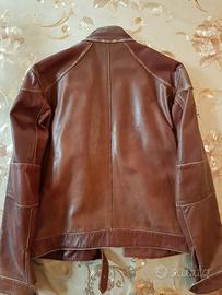 Vendo giubbotto in vera pelle marrone, taglia 50 (L), originale Gian Bertone. Questo capo di abbigliamento è un pezzo unico, caratterizzato da una bellissima stampa di un'aquila in volo all'interno, su uno sfondo di tramonto. Perfetto per chi cerca un giubbotto di alta qualità con un tocco di stile e originalità.