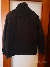 Ottime condizioni. Tessuto esterno in simil cordura pesante effetto jeans slavato nero. Imbottito. Con cappuccio staccabile.