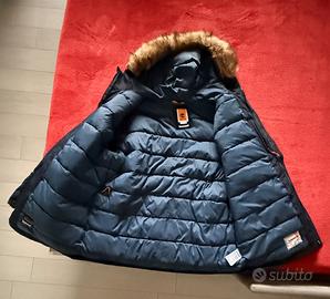 Caldo giubbotto invernale con cappuccio bordato in pelliccia sintetica. - Logo Timberland sulla manica. - Tasche frontali con patta. - Chiusura centrale con bottoni e zip.