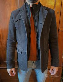 Chiusura con bottoni e zip rimovibile, colore grigio scuro, comodo e versatile. Ottime condizioni indossato poche volte, nessun difetto, taglia 50