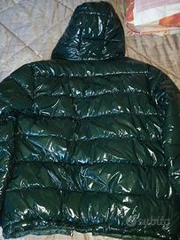 colore verde lucido, con cappuccio e tasche, mai indossato.