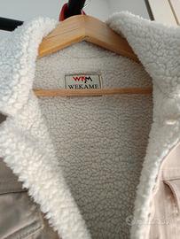 giubbotto in denim con interno in pelliccia sintetica. taglia L ma veste piccolo. unisex