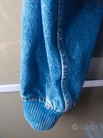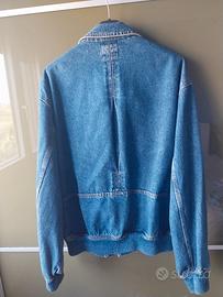 Indossato poche volte,vintage. originale fine anni '80, inizio anni '90. 3 tasche frontali (2 esterne in basso con una con logo in pelle ed 1 con spazio tasca interno in alto). Chiusura con bottoni marchiati con striscia che li copre. Pesce sul retro a centro schiena. Maniche e bordo inferiore in tessuto. misure tra le ascelle 61 cm, più stretto in vita