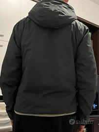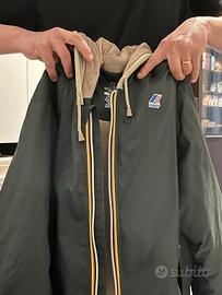 Vendo giubbotto uomo K-Way imbottito con interno in pile,colore verde con cappuccio.Zip frontale con le classiche righe tricolore K-Way,isolamento termico,idrorepellente e antivento,prezzo trattabile