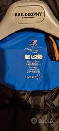 come da titolo bel piumino k-way piumino d'oca colore blu e nero taglia M un po rovinato sulla manica ma rimediabile "modello originale"