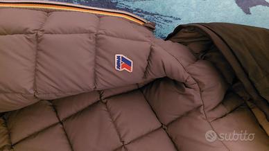 Giubbotto K-way nero e grigio, taglia M, reversibile, lato nero impermeabile e lato grigio con imbottitura piena e di qualità sono fatti in piuma d'oca, mantiene la temperatura corporea senza scaldare.