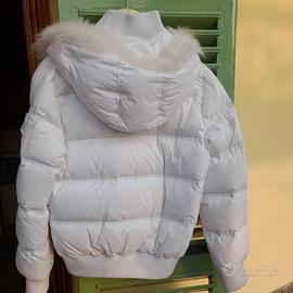 Giubbotto bianco con imbottitura di piumino, da donna con n. 2 tasche a cerniera laterali e n. 1 taschino a cerniera sulla manica sx. " KOCCA ", con cappuccio imbottito, TG. " L ", usato pochissimo.