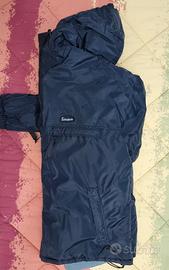 Giubbotto taglia L e marca Vespa, vintage anni 90 tenuto bene, senza strappi o altro. Invernale. Con cappuccio, chiusura a zip. Il capo fa riferimento alla storia del marchio Vespa.