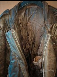 Giubbotto in pelle vintage, colore marrone, di fabbricazione anni ottanta.