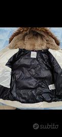La giacca è realizzata con il caratteristico materiale con finitura lucida di Moncler che contrasta con un bordo in pelliccia. La giacca è in ottime condizioni con l'ultimo bottone rotto (vedi foto). Taglia L (taglia Moncler 3)