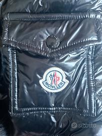 Giubbotto Moncler originale da donna nuovo con cartellino, colore nero lucido, cappuccio rimovibile con pelliccia nera, con tasca sulla manica sinistra.