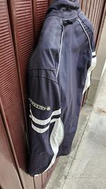Giubbotto in perfette condizioni, taglia M, che corrisponde a una 44, utilizzato pochissimo, completo di protezioni per gomiti spalle e schiena, sfoderabile l’imbottitura interna che permette isolmento termico anche in inverno.