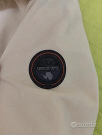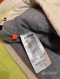 Giubbotto Napapijri originale, modello Rainforest (Icons), taglia L, colore beige chiaro con interno in pile grigio.