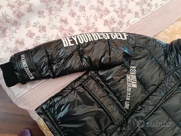 giubbotto imbottito con tasche e cerniera anteriore di colore nero lucido