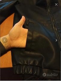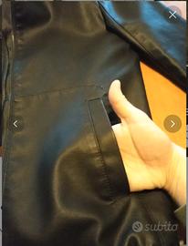 Vendo giubbotto nero, con cappuccio e in ecopelle (100% poliestere). È riportata la taglia L ma veste più stretto (vedere bene le misure in foto).