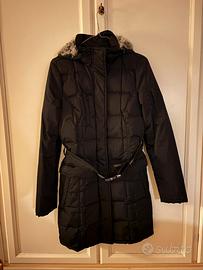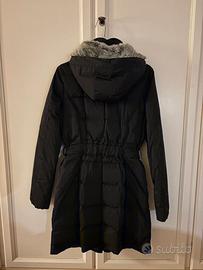 Giubbotto Woolrich nero, leggermente avvitato e lungo fino a mezza coscia/sopra al ginocchio, chiusura con zip, bottoni e cintura elastica (leggermente rovinata la fibbia, perfettamente funzionante). Comode tasche interne ed esterne. Cappuccio rivestito in pelliccia. Usato poche volte, in ottimo stato.