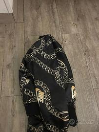 Vendo questa spettacolare giacca Nike stile bomber, caratterizzata da una grafica unica con catene oro e loghi Nike distribuiti su tutto il capo.