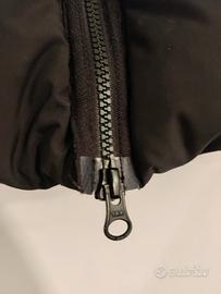 Con cappuccio, doppia cerniera e 2 tasche con bottoni perfettamente funzionanti.