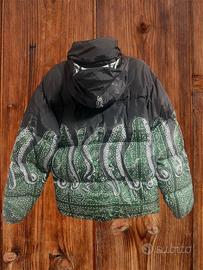 Vendo giubbotto invernale taglia XS, perfetto per chi cerca un capo caldo, originale e dal carattere deciso. Il design unisce una parte superiore nera a un'esclusiva fantasia bandana verde e bianca, creando un look unico e di grande impatto.