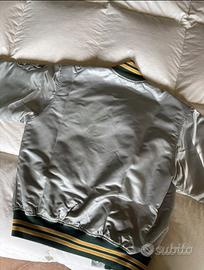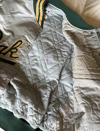 Collezione Made in Italy Personalizzata Oversize Y2K Outfit Second hand Oakland Athletics MLB Baseball USA Rara Edizione limitata Collezione Anni '80 Anni *90 Vintage originale Giacca sportiva Varsity Jacket Starter Satin Bomber Harrington Oversize Made in USA San Francisco American League Iconica Old School Introvabile Fans Memorabilia Sport Jacket Verde Oro Rare Piece Retro Style Streetwear Classic Outfit Second Hand