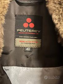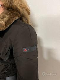 Giubbino originale marca Peuterey in piumino d'oca di colore marrone con collo in pelliccia staccabile.