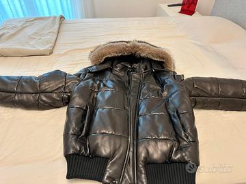 Giubinotto in pelle imbottito f.lli rossetti taglia 52 Con cappuccio con bordo in volpe polsini in lana come nuovo