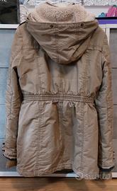 Giubbotto Parka imbottito colore beige. Esterno cotone, interno pelliccetta in pile "pecorella". Coulisse regolabile in vita. Il cappuccio si puó togliere. Marca Alcott.