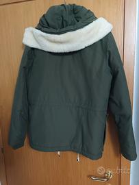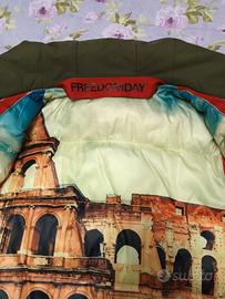 Giubbotto Parka invernale uomo Freedomday verde taglia S ottime condizioni come da foto reali, dotato di cappuccio e battolina asportabile con pelo, interno fantasia chiusura giaccone doppia con robusta cerniera metallica e 7 bottoni un taschino interno chiudibile con cerniera di cm.16 e profondità 14, 2 tasconi di cm19x21 e 2 taschini cm.15x9