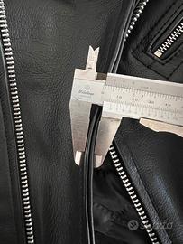 Giubbotto di pelle modello chiodo in vera pelle Modello Inglese Pelle spessa e pregiata Spessore pelle: 6 mm Peso: 2,160 kg Taglia 44, calza come una L - XL Misure: Spalle (da cuciture spalle): 50 cm Maniche (da cucitura ascelle): 50 cm Lunghezza (dal colletto alla vita): 72 cm Torace: (da cuciture ascelle): 56 cm Vita: 53 cm Condizioni: NUOVO, lo vendo per taglia errata Pagato 460 euro Sono alto 1,82 x 74 kg
