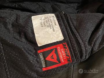 Giubbotto in pelle Dainese, praticamente nuovo , taglia 50, ma direi che può andare bene per un 48 ( io adesso porto 50 e non riesco a chiudere il giubbotto). Dispone anche di lampo per attaccare i pantaloni. Protezioni spalle e gomiti/avambracci. Visibile a Roma .