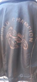 Giubbotto in vera pelle,Vintage, tema motociclista sul retro, Combipel taglia Xl con piccoli segni ma niente di che.
