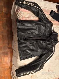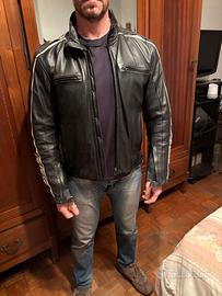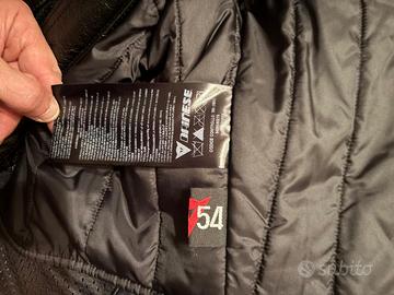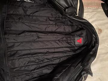 giubbotto moto dainese in pelle come nuovo, nero, sfoderabile, con protezioni gomiti e spalle, taglia 54; dimensioni: spalla spalla 51 cm; fianco fianco 51 cm; spalla vita 57 cm; manica 62 cm