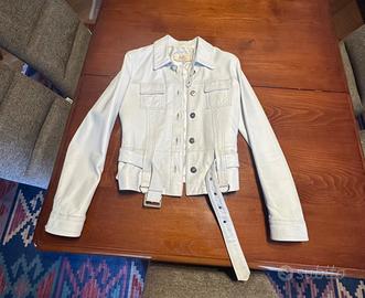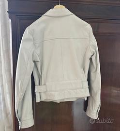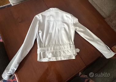 Giubbotto pelle colore bianco, taglia 44, ICE BREAKER STORE, stretto in vita con cintura.