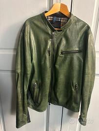 Giubbotto pelle verde con rinforzo nero ,usato pochissimo. Taglia 56 - ottime condizioni. Edizione limitata- doppia cerniera -vestibilita svasata e comoda.