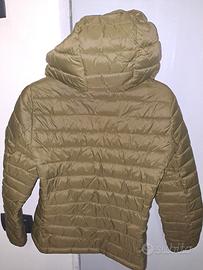 Piumino leggero con cappuccio per bambino/a 10/12 anni, colore verde, ben conservato, nessun difetto di usura. Prezzo simbolico 10 euro
