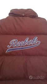 GIIBBOTTO PIUMINO MARCA REEBOK, COLORE ROSSO GRANATA, STILE BOMBER. USATO, QUASI NUOVO. IMBOTTITURA 50% PIUMINO 50% PIUMA. TAGLIA M/L.