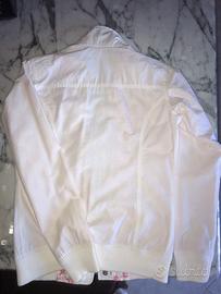 Giubbotto Puerco Espin bianco nuovo, mai indossato (misura sbagliata) e privo di imperfezioni. Tessuto esterno:35% cotone e 65% Nylon; Fodera:100% Poliestere.