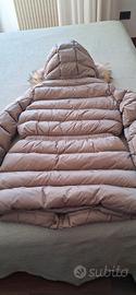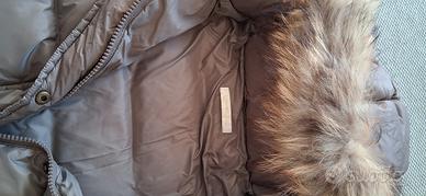Colore fango tortora taglia 14 anni 164 cm. lunghezza manica dall'alto al basso 58 cm, lunghezza cerniera 75 cm circa. marca Liu Jo con cappuccio incorporato con pelo vero procione staccabile. Vera piuma interna, materiale esterno nylon, poliammide.