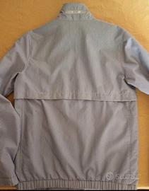 Giacca/giubbotto sportivo, chiusura con cerniera, taglia s, tessuto leggero a piccole righe verticali bianche e nere.
